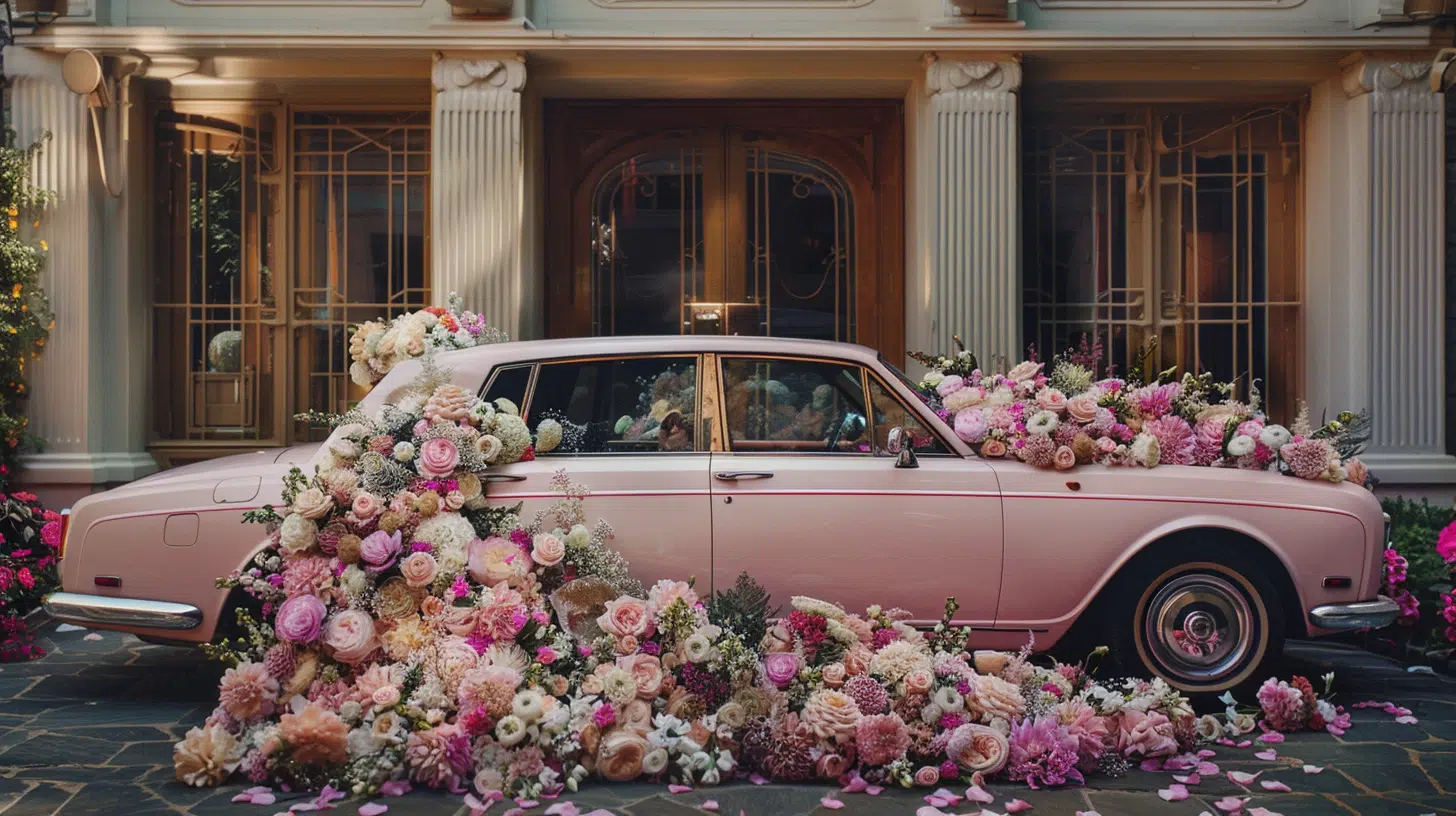 L'harmonie entre le thème du mariage et les fleurs choisies pour la voiture est primordiale.
